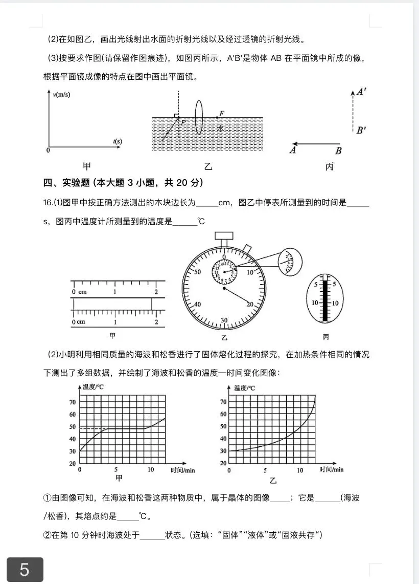 2024-2025学年九上物理期中测试题、答题卡及答案解析pdf版(13-17章)