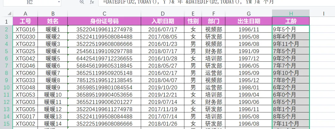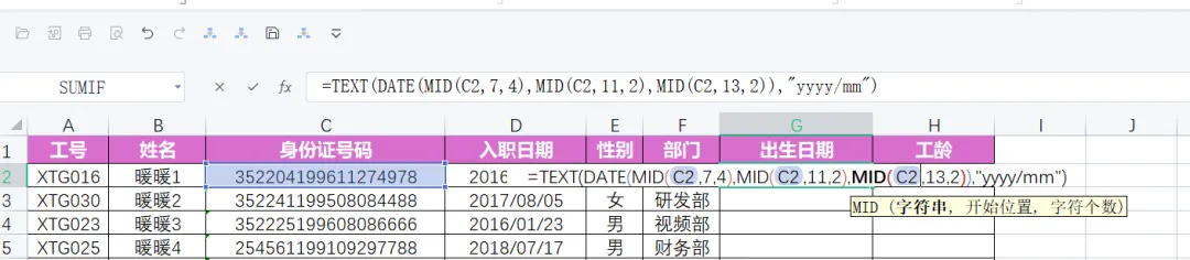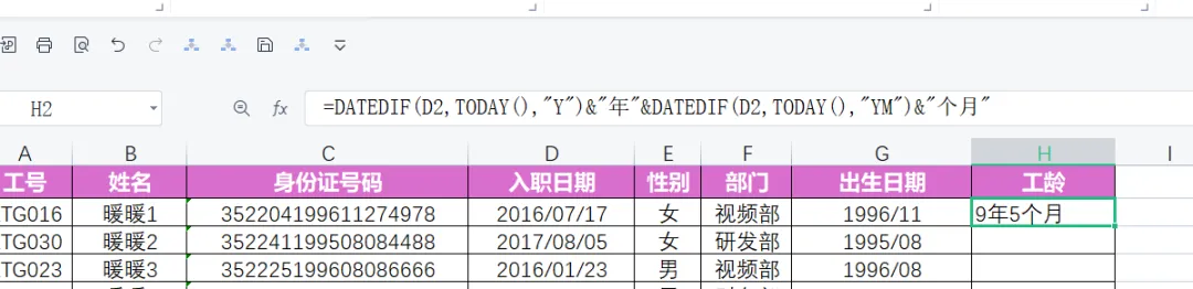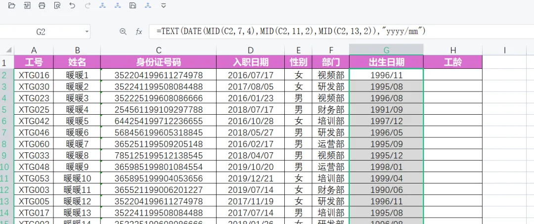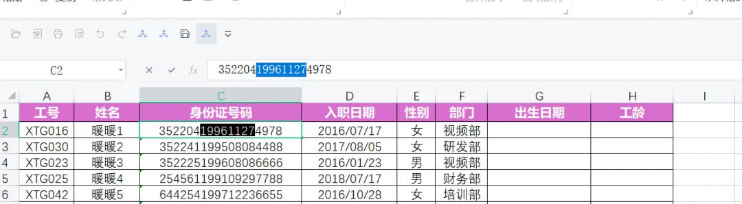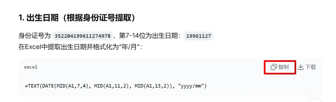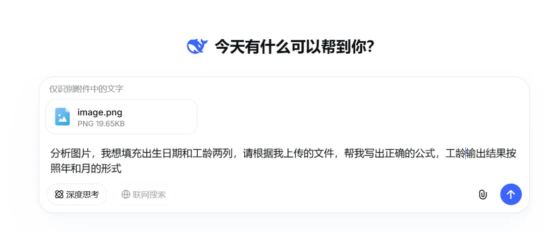 一个职场小白,面对Excel中大量数据需要处理,公式不熟,如何让自我修养迅速提高,找AI帮忙。一份数据,一个AI大模型。具有编程功能的AI大模型,我首推DeepSeek,这是我的经验。1.小白的初级做法是Ctrl+C和Ctrl+V,一个一个数据处理,但是大量数据就太浪费时间了。先复制身份证字段中的出生日期,Ctrl+C复制后。选择生日期字段下面单元格,按住Ctrl+V。在选择下面空白单元格,按Ctrl+E,所有数据就填充好了。为了保密,我们不用给AI大模型所有数据,只要截图一行就可以啦,如图:打开DeepSeek,Ctrl+C把图片上传,把告诉AI你的要求。提示词如下:稍等片刻,DeepSeek就帮你写好了两个公式,分别是提取出生日期和工龄。截图如下:你会发现有错误,那是因为,AI给你的公式中,提取数据的单元格是A1,实际上身份证号码字段在C2,我们还要把A1改成C2,回车就可以了,如图:把光标放到单元格右下角,变成实心十字,向下双击,就填好数据了。把公式复制到相应单元格,你会发现错误,AI提取数据B1单元格有问题,我们要修整一下,要提取的数据在D2,把B1单元格改成D2单元格。把光标放到单元格右下角,变成实心十字,向下双击,就填好数据了。May joy be boundless!