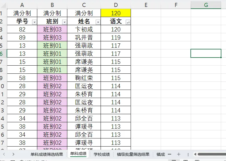 单科.名次筛选