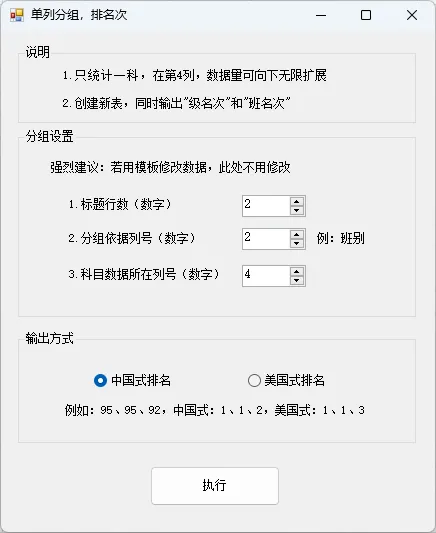 《成绩统计排名》Excel插件【单科用】