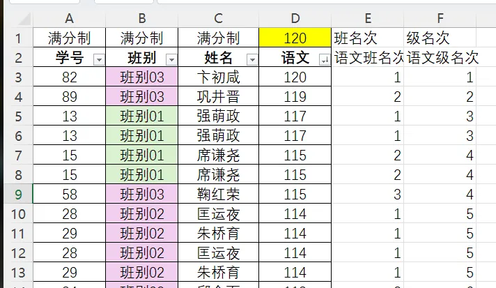 单科.班/级名次