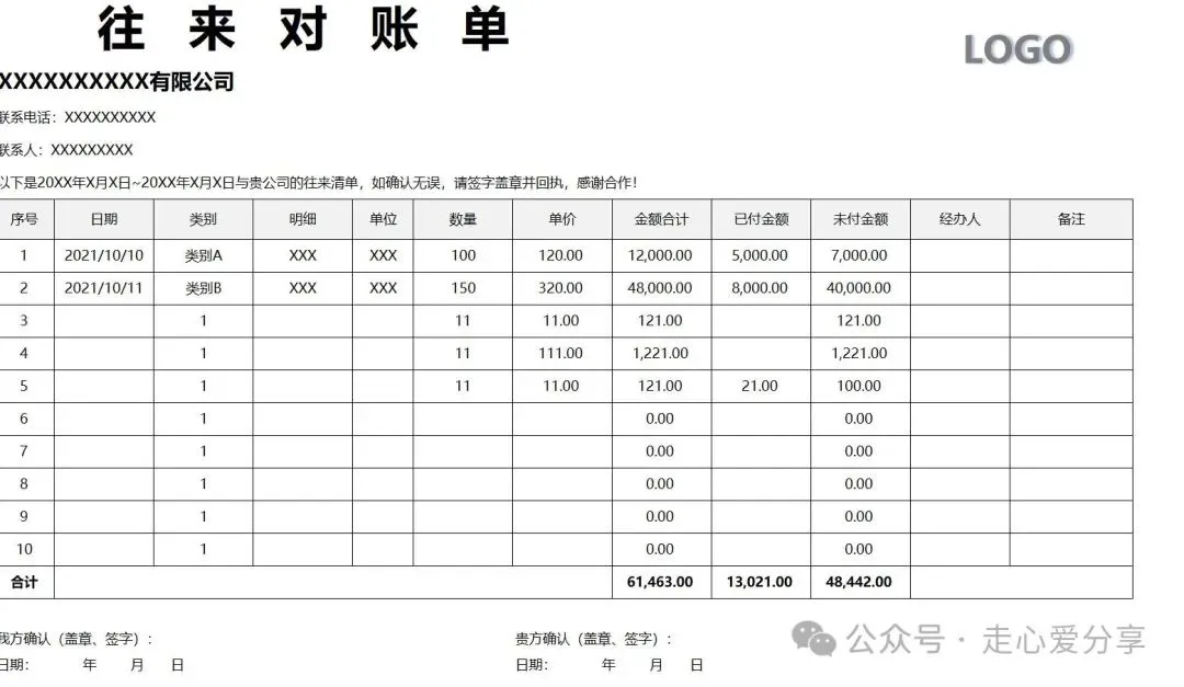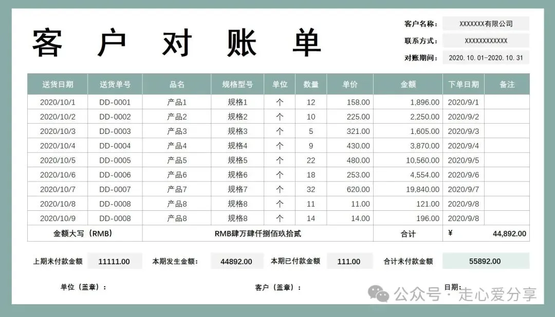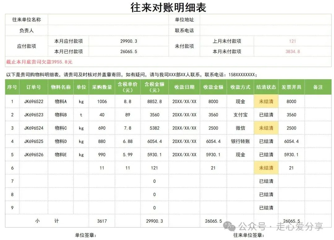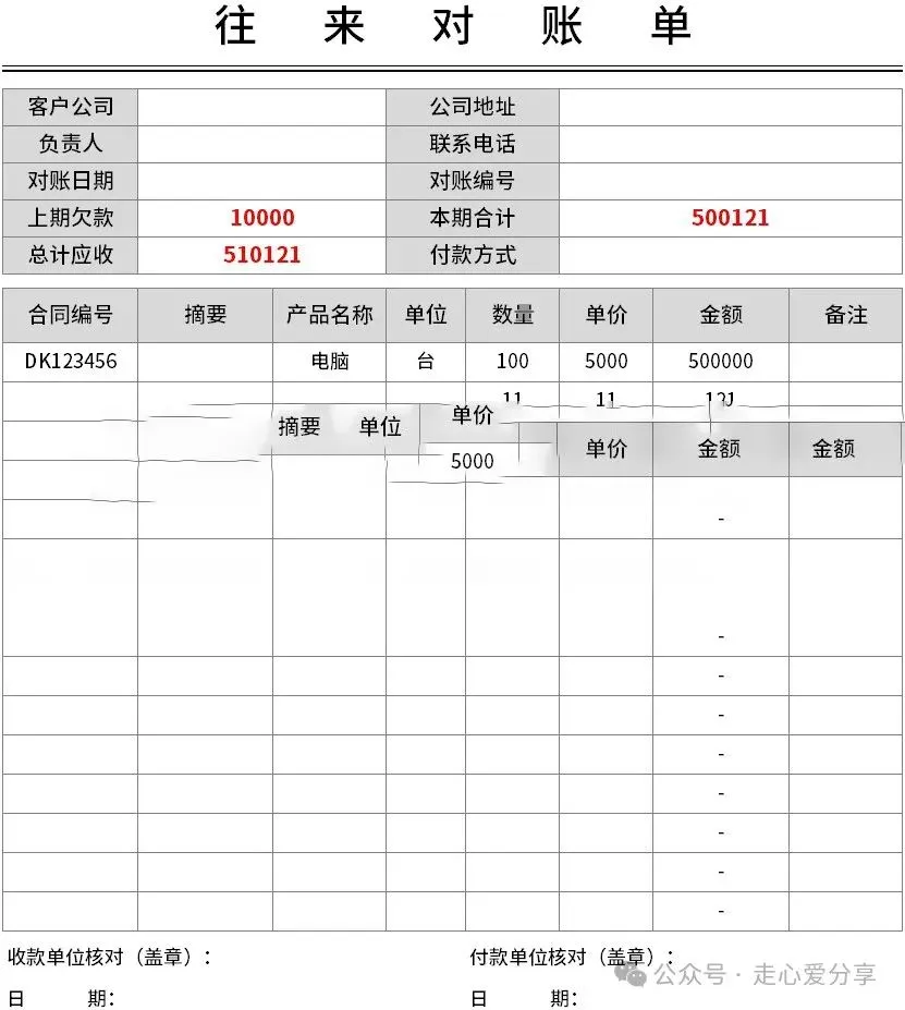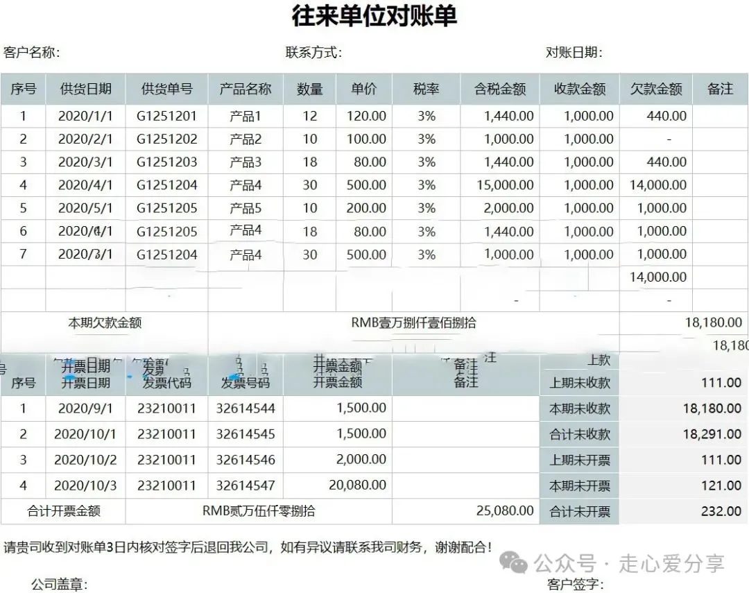 回复关键词“对账单”领取!