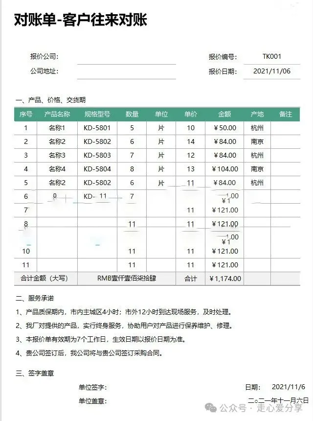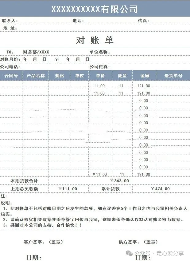 对账单模板