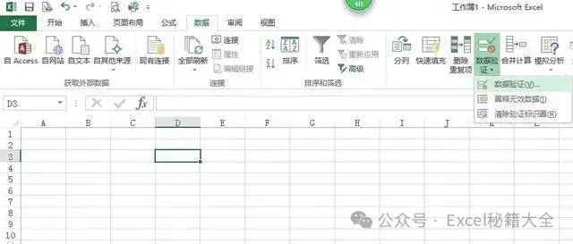 菜单栏选择数据→数据验证