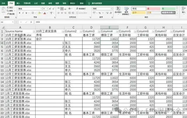 今天介绍一个Excel小技巧,只用1分钟,就可以将12个Excel工资文件,合并在一个文件中,并将每位员工的工资项目进行求合汇总,这个方法也同样适用于其他相似的工作需求。