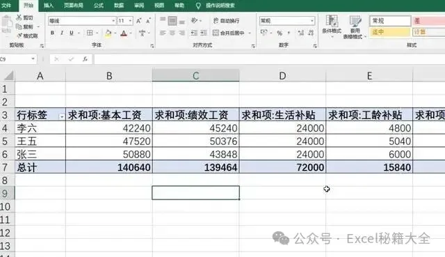 现在,我们就可以看到每位员工的工资项目的汇总数据了(图9),是不是很方便,你学会了吗?