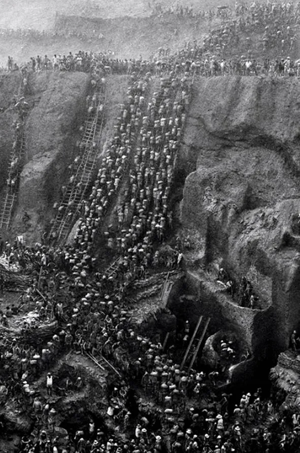 没有任何的挖掘机械,只能听见5万人在深坑中窃窃私语。
