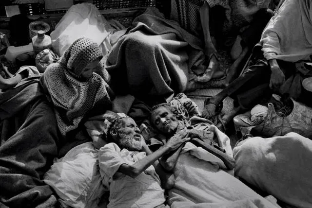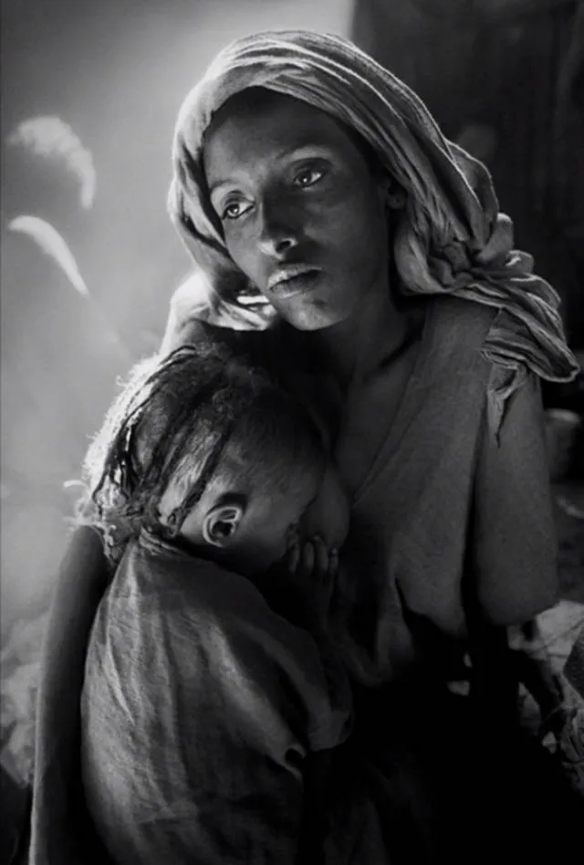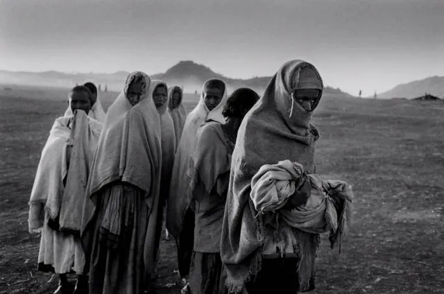 这张照片里的是科普特人,他们来自埃塞俄比亚的北部地区。他们信奉科普特教,一年中必须禁食200多天,即使孩子快饿死了,也绝不违反教规,他们只等待死亡的降临。