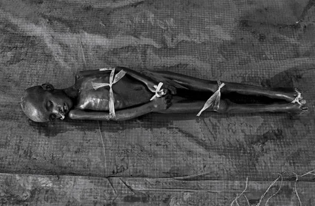 在下面这张照片里,一位父亲正在送别自己的孩子。他要把尸体丢到“山上”,他神情自若,仿佛什么都没有发生一样。
