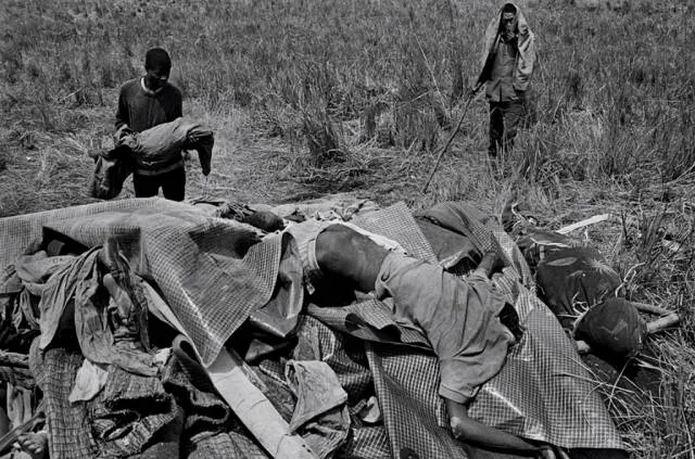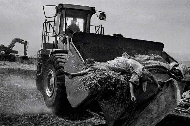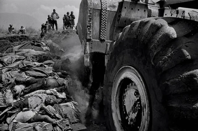 每天至少有12000-15000人死亡。人们无法安葬所有的死者,他们用一辆法国军方的铲车,把尸体铲到一起,十来个人一堆,再挖土掩埋。
