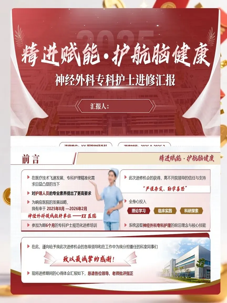 一份用心制作的进修汇报PPT,不仅是个人成长的记录,更是推动科室发展的动力。希望这些小技巧能帮助你做好下次的进修汇报。