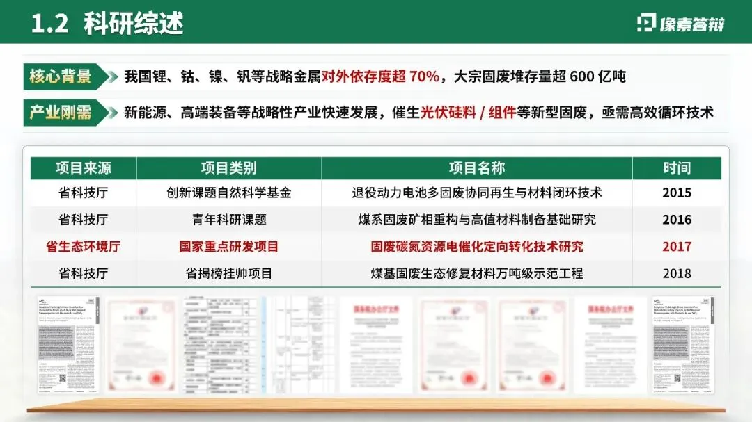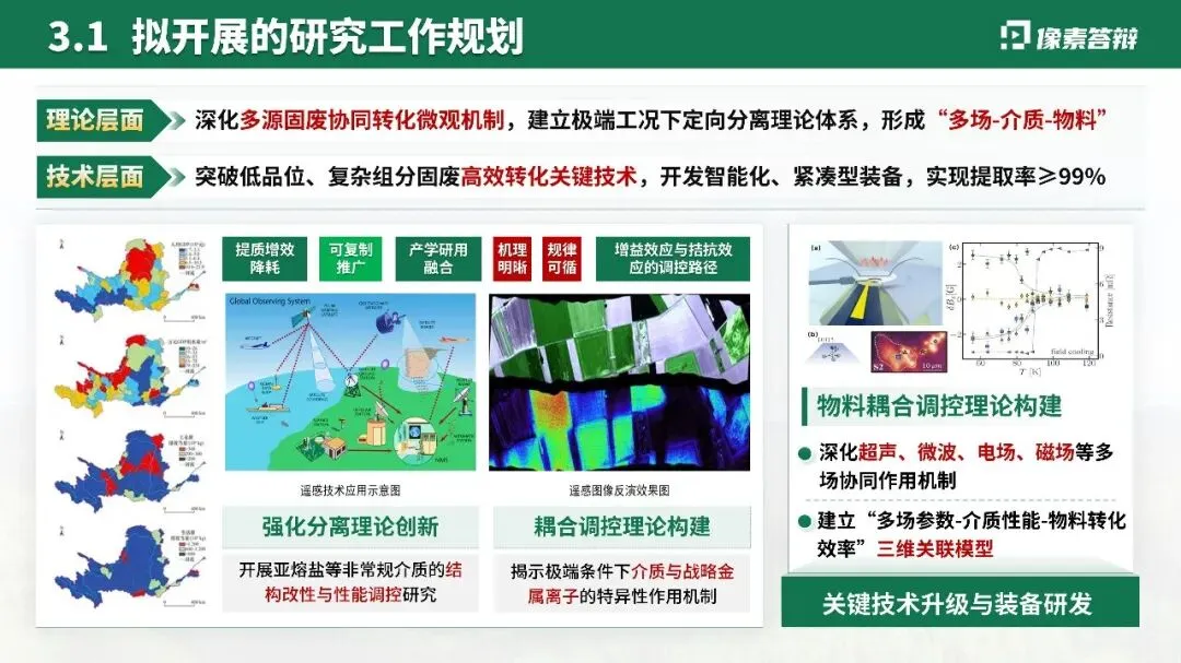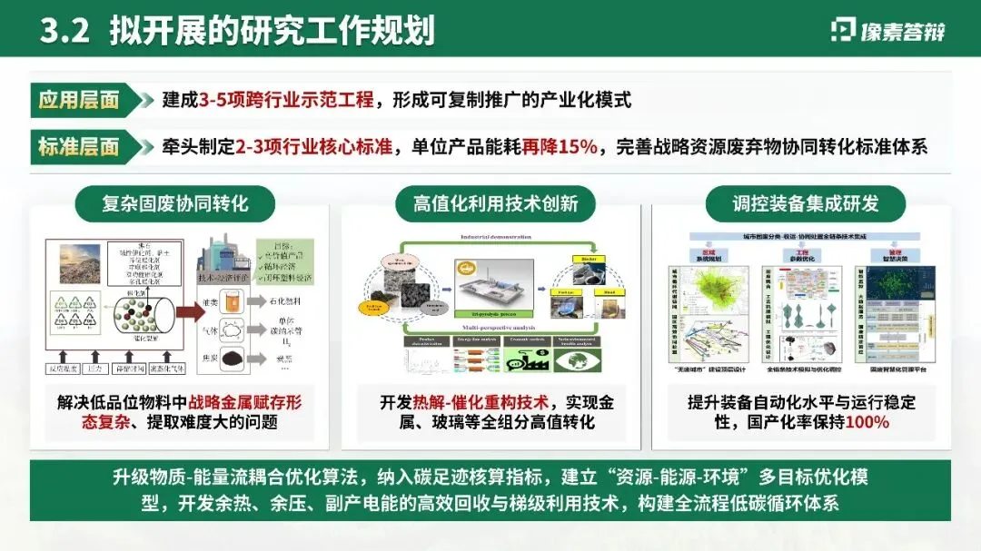 这是一份内蒙古自治区杰青项目的答辩汇报,主题是 “战略资源废弃物协同定向转化研究”,汇报人来自xx大学环境工程研究所,核心聚焦固废资源的高值化回收利用,整体逻辑清晰、成果扎实: