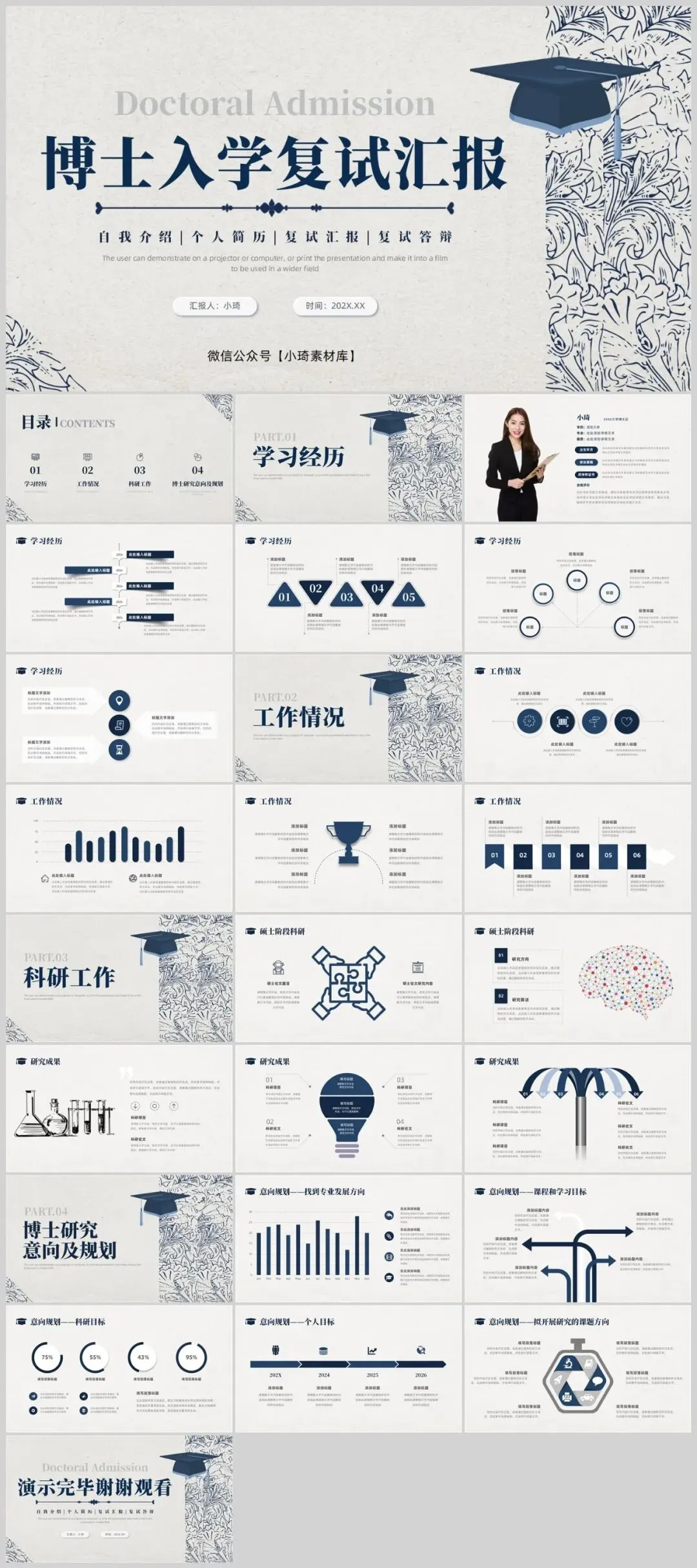 【2305期】博士入学复试39套PPT模板,含英文版,助你成功翻盘!