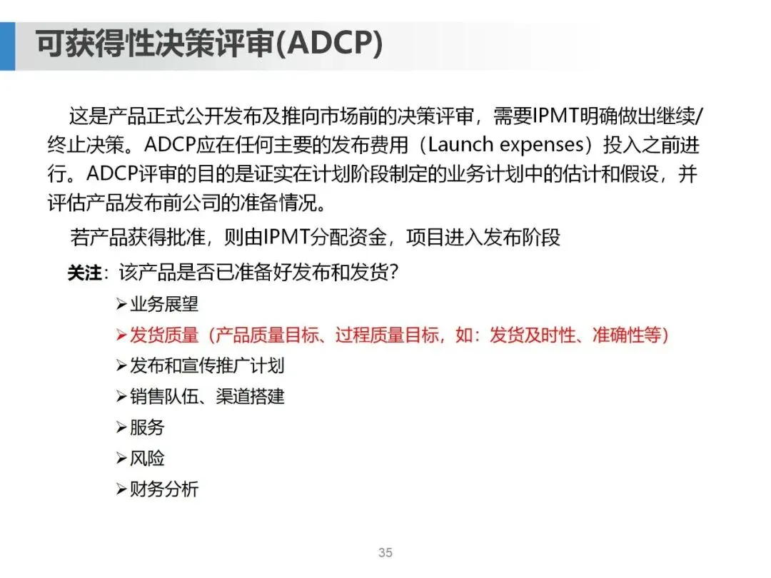 可获得性决策评审(ADCP):产品发布前,评估产品的市场准备情况和发布计划。