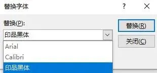 在【替换为】中,选择自己想要的字体即可,这样,文档中所有的【印品黑体】就都会被替换为【微软雅黑】啦,对英文字体也同样有效哦。