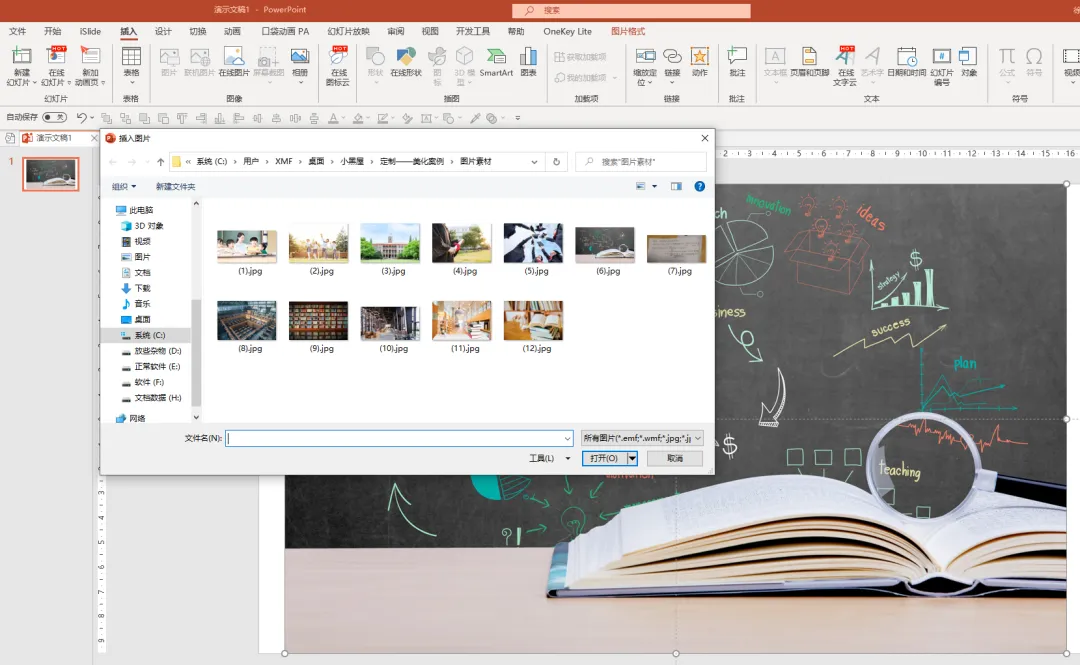因为一旦你在某个文件夹插入过一次图片后,再次插入图片时会默认打开上次的文件夹,这时我们直接选择图片即可,省去了文件夹索引的时间。
