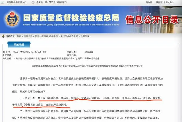 2011年核污染事件发生之后,国家质检总局就发布了针对日本核污染地区的食品禁令。