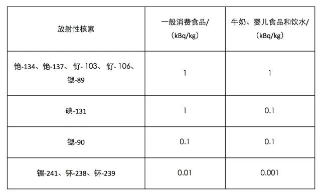 (更为专业的解释补充:食物中放射性核素对人体的危害主要是由于摄入污染食品后,放射性物质对人体内各种组织、器官和细胞产生的低剂量长期内照射效应。当食品中的放射性核素含量检测结果达到表1的数值时,应采取补救行动或防护行动。)