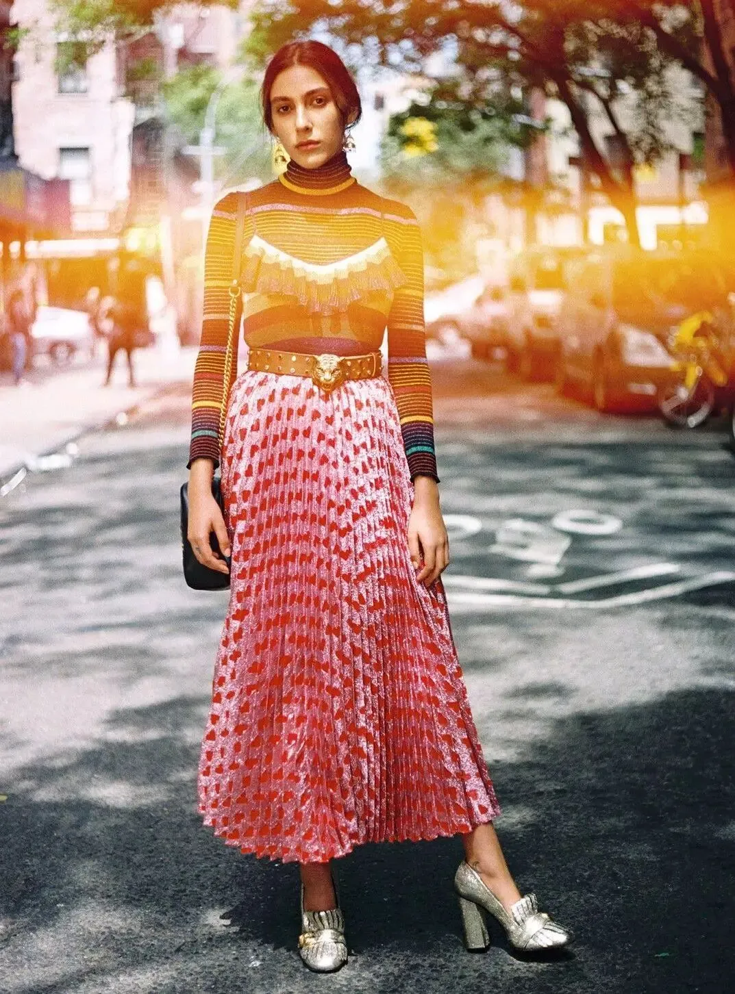 使百褶裙的穿法更加具有新鲜与时尚感。