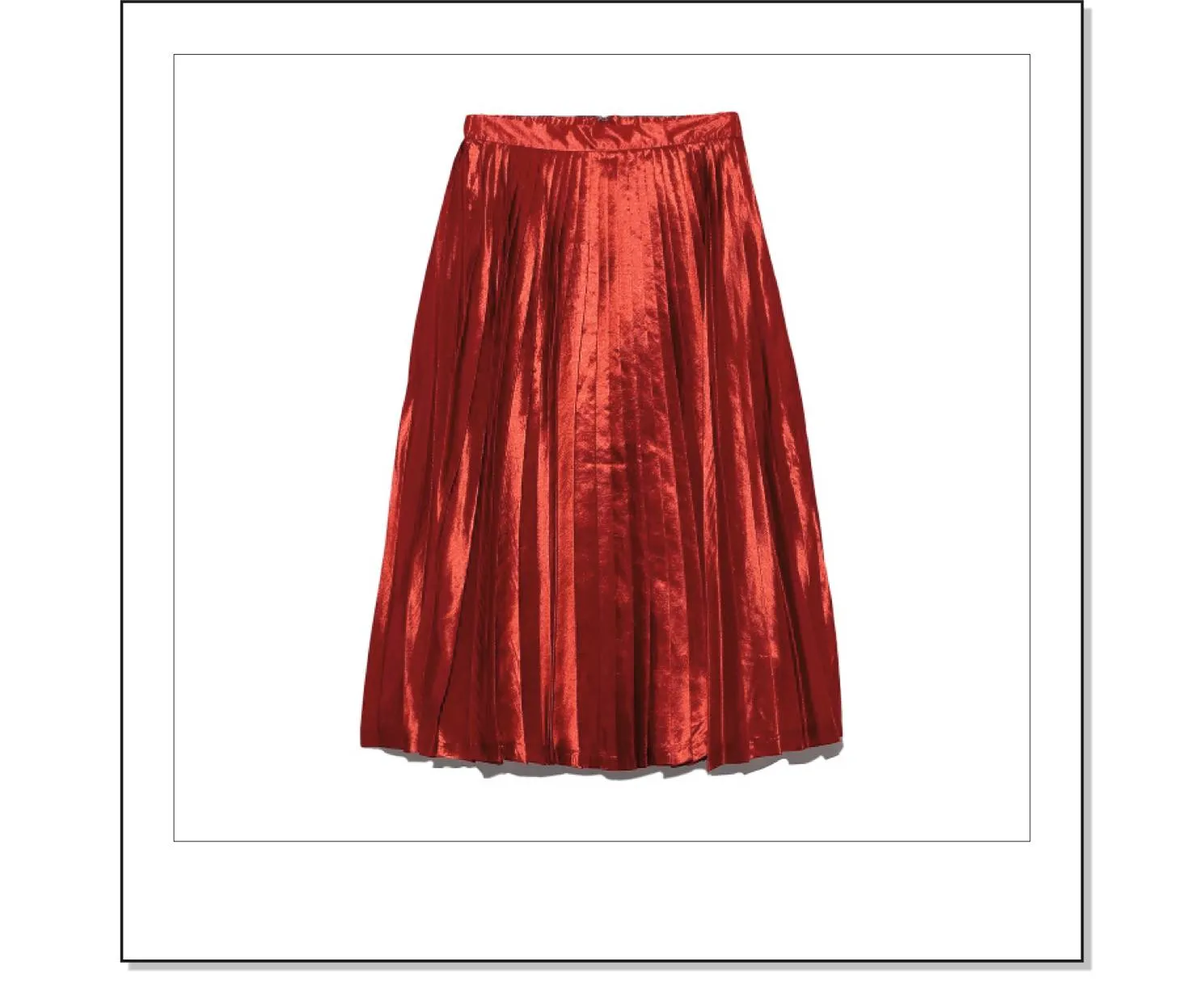 都在组团挑战这条闪闪发光的金属色百褶裙吗?