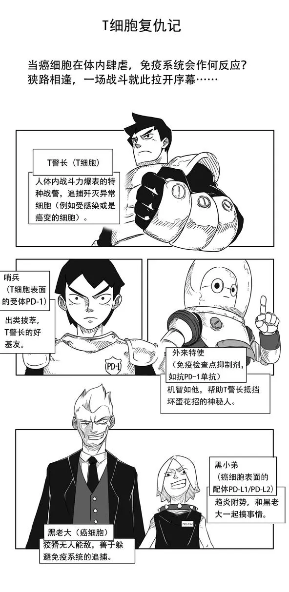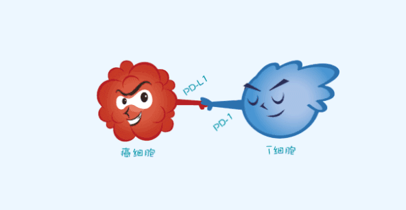 T细胞表面的“PD-1”与癌细胞表面的“PD-L1/PD-L2”结合时,T细胞将失去战斗力,无法攻击癌细胞。