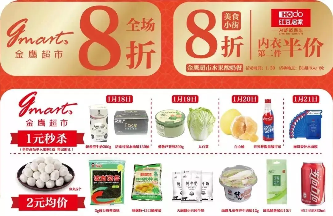 1.1-1.31, B1金鹰超市满38收5券,单笔限收一张。