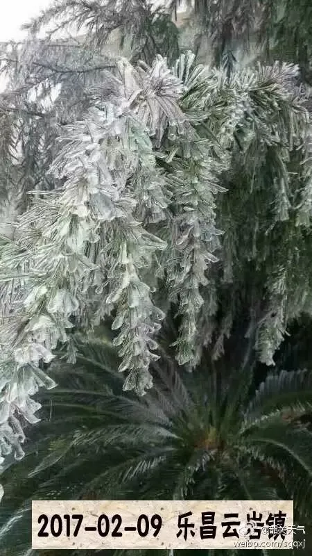 ▲2月9日,云岩镇已出现结冰现象,草木冻成厚厚的冰棍。