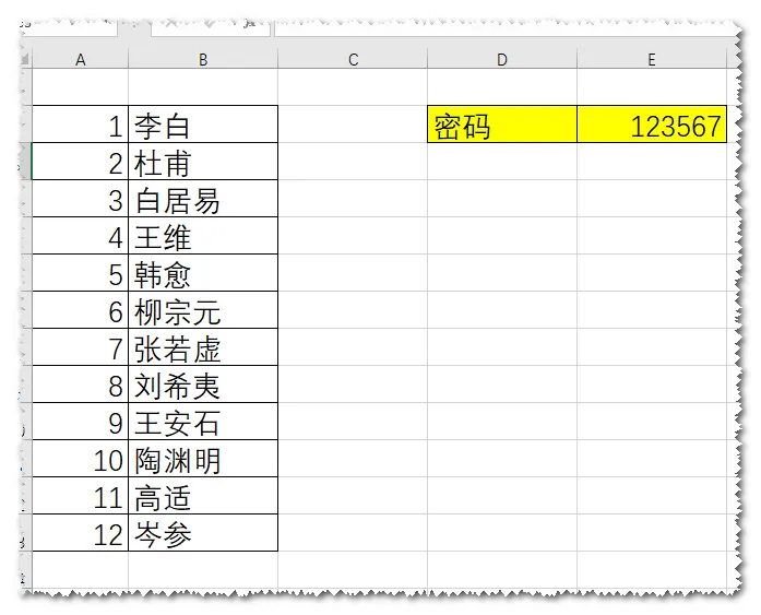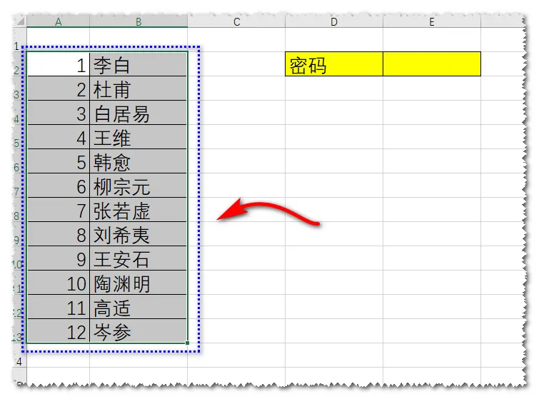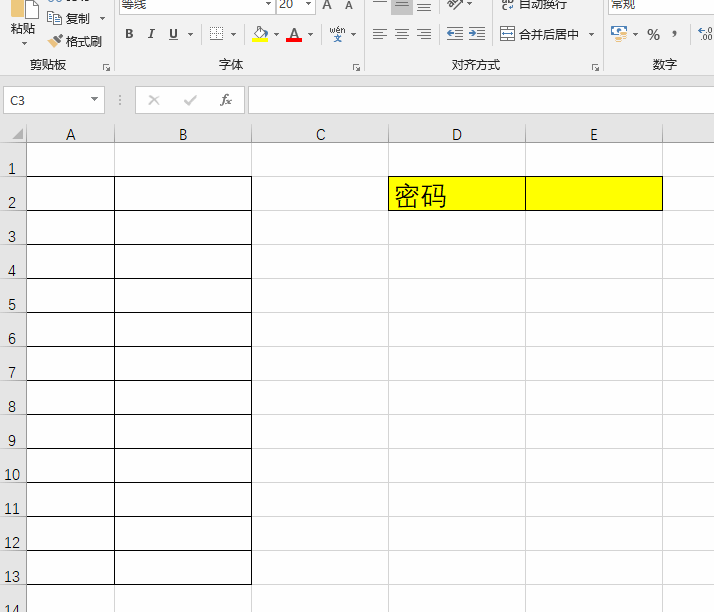 选择要输入密码的单元格。