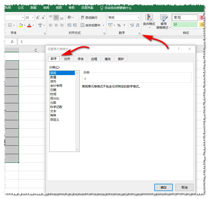 打开“设置单元格格式”对话框,选择“数字”选项卡。