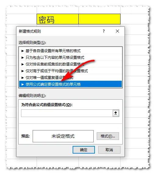 选择“使用公式确定要设置格式的单元格”。