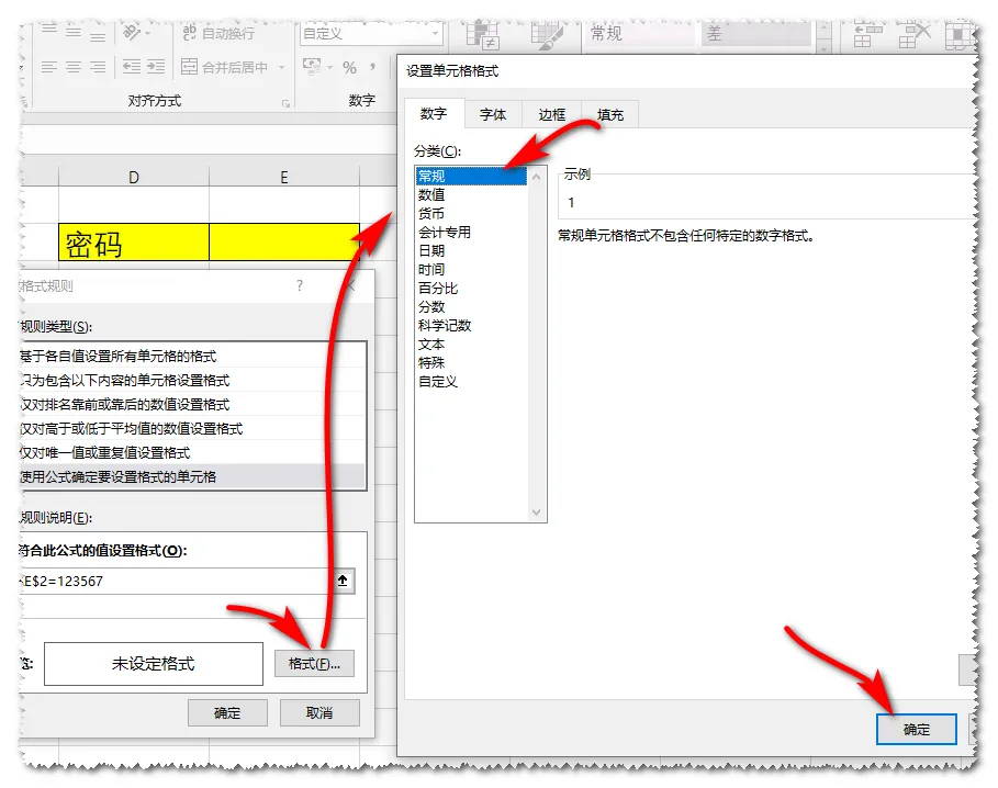 点“格式”打开“设置单元格格式”对话框选择“常规”点“确定”按钮。