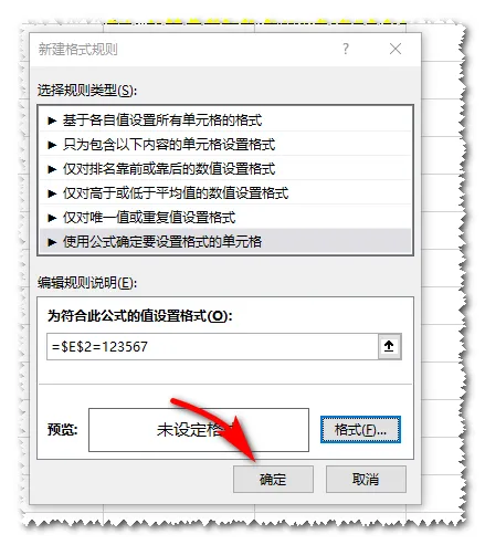 回到“新建格式规则”对话框,点击“确定”按钮。