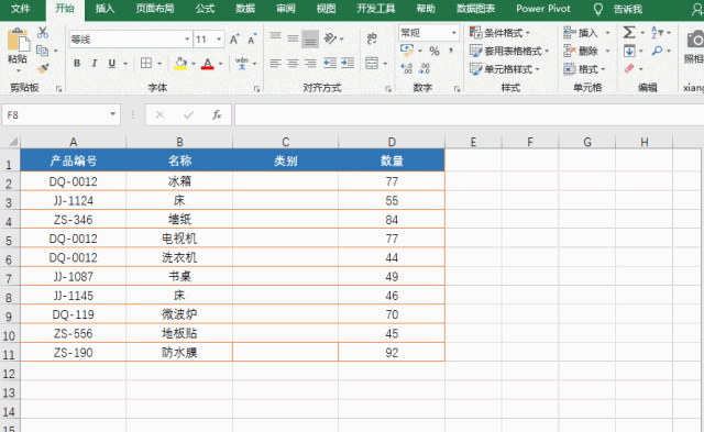 如下图表格所示,我们需要先提取出产品的编号,然后进行大类的判断。