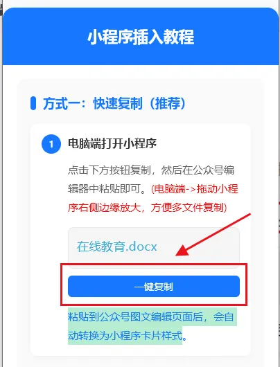先把公众号文章的内容编辑好,确定好要插入附件的位置;接着打开专门的附件工具「微快档」小程序,就能快速添加附件文件(Word/PDF/PPT全支持)「微快档」小程序1分钟可以完美搞定!