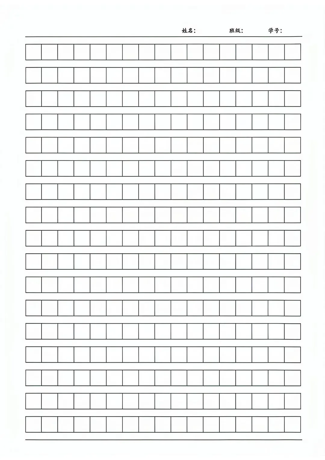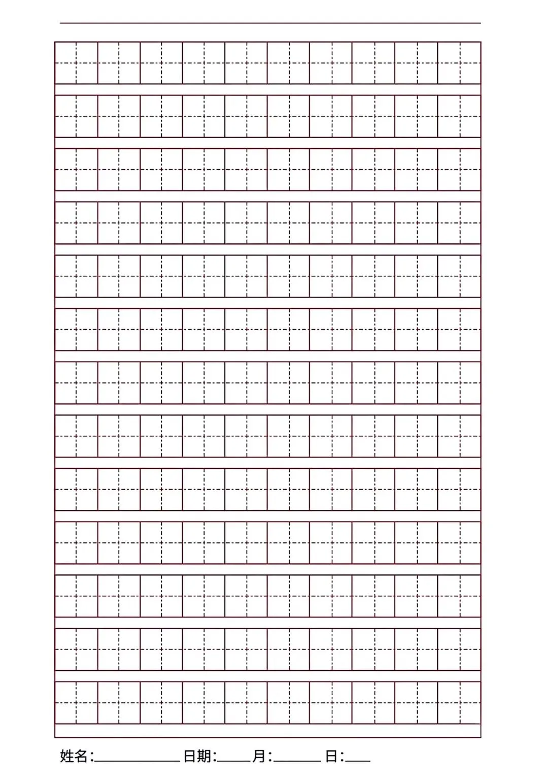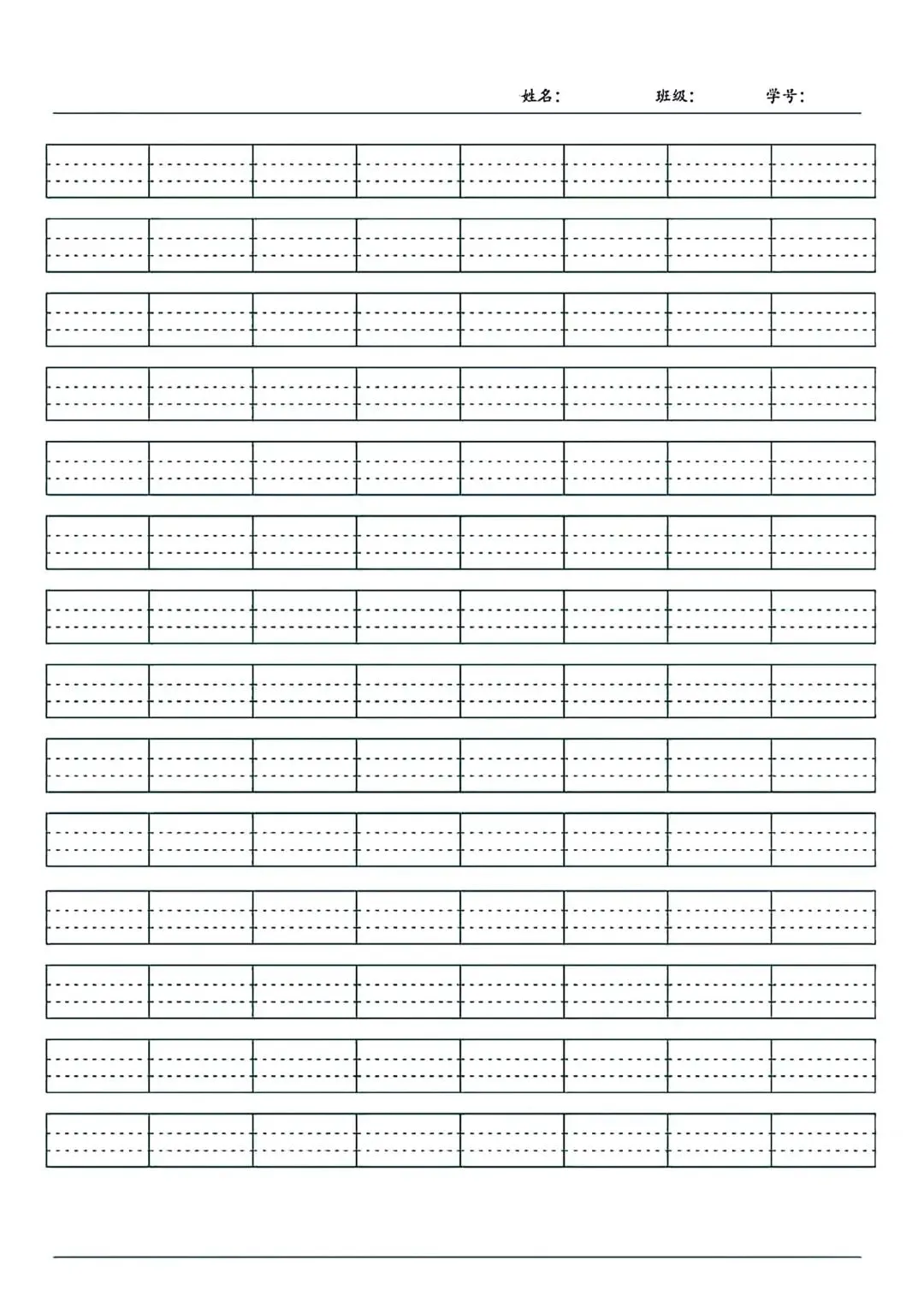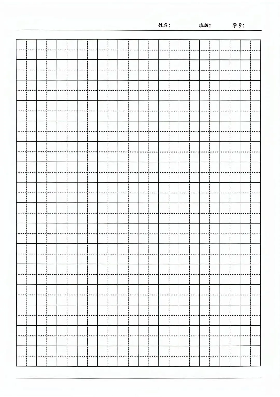 教育部出台的多个文件,像语文课程标准、书法教育指导纲要等,都明确了不同阶段学生要练书写,现在小学里写字课已经成了重要内容。写字不光对语文学习很关键,其他学科也都离不开。字写得好、排版整齐,一辈子都能受益。对小学生来说,练字的过程也是培养行为规范的过程,安排好学习和抄写,两者还能互相促进。小学不管哪门课,书写规范都很重要,和学知识一样关键。比如数学,解题时写得乱,步骤容易出错,思路也会受影响,更别说语文了。尤其是考试时,试卷是扫描进电脑阅卷的,老师没时间慢慢猜模糊的字迹,任务又重,字写得不清楚、不规范,很可能得不到好分数,所以规范书写太重要了。这里给学生准备了各种练习格子,特别是作文格,老师家长可以打印出来给孩子练一练。小学生平时学习常用到各种格子:语文作文的稿纸、写拼音的四线三格、练生字的田字格,数学的运算对齐纸、带线格子,英语的听写纸、单词表、汉英互译单词练习纸、作业纸等专用格子。还有语数英错题本。家长和老师得多留意,随时给孩子提供这些工具。下面是格子的预览图,自己下载就能用。以下是部分模板范本
