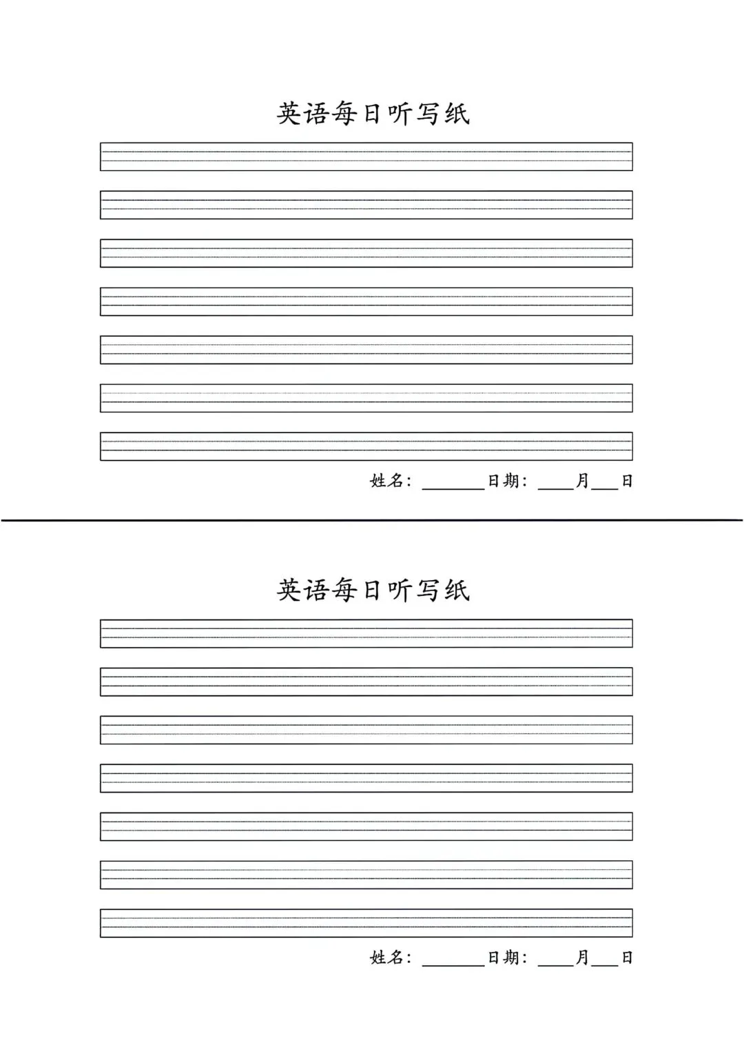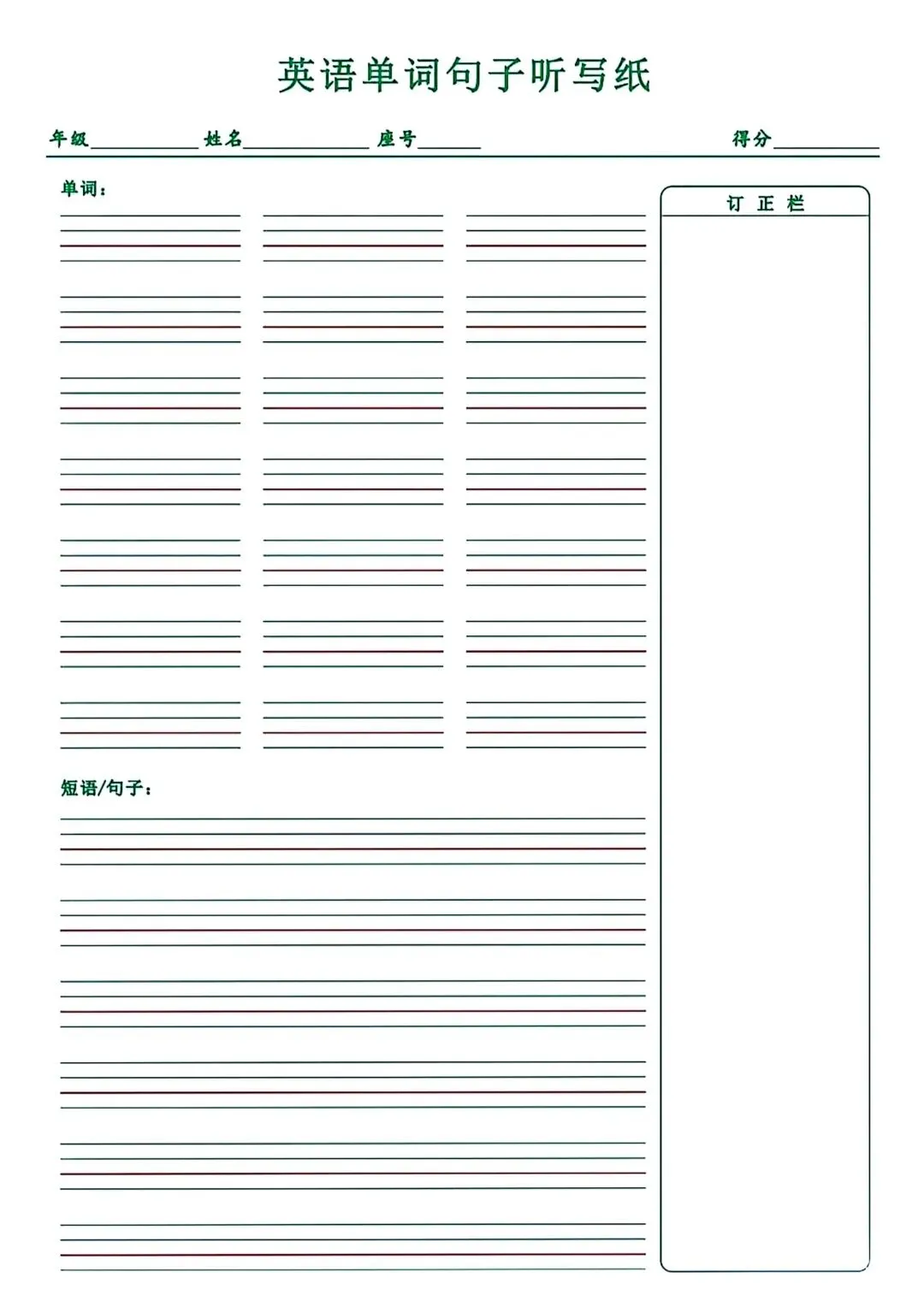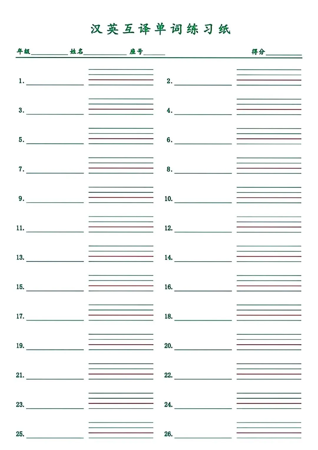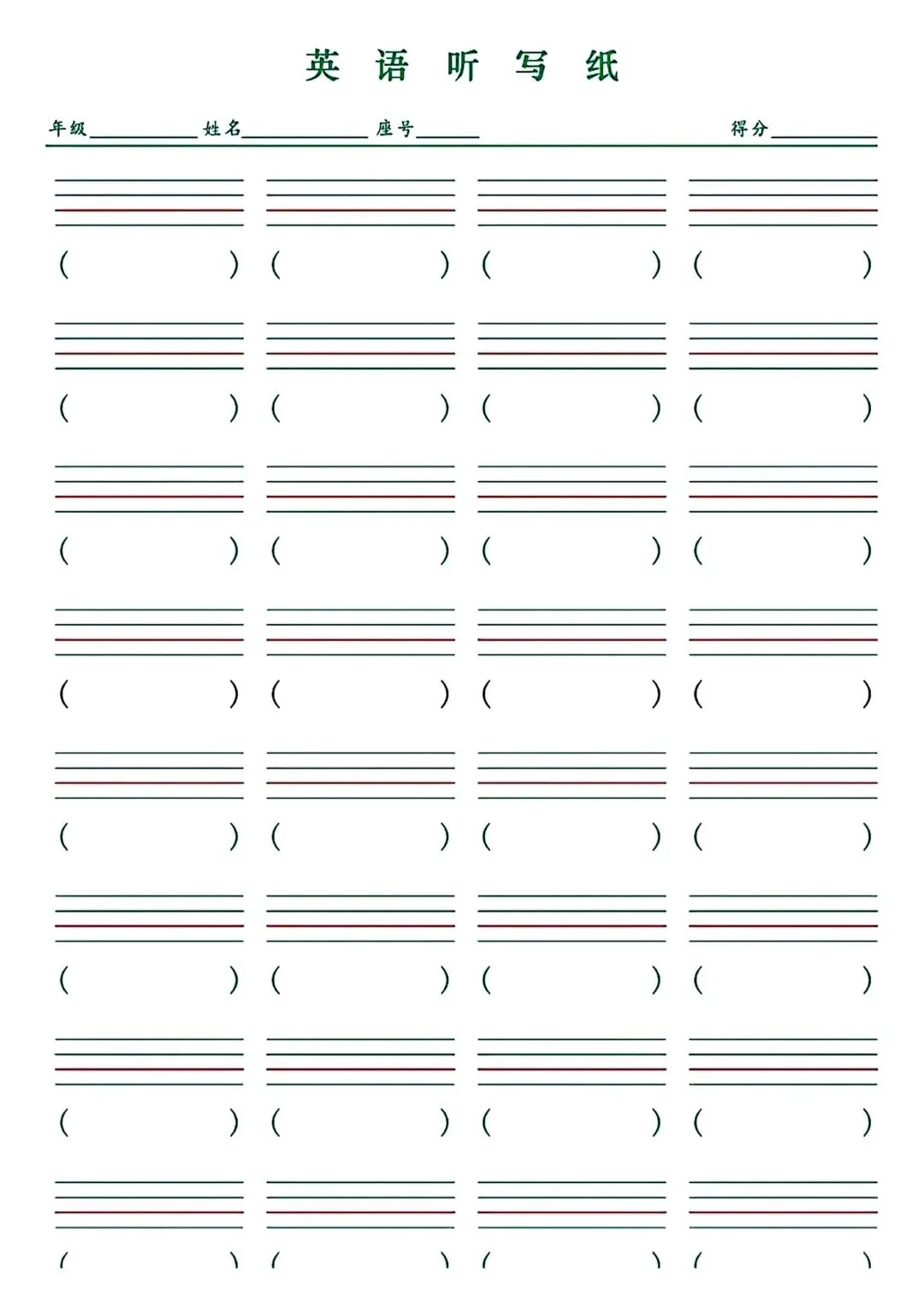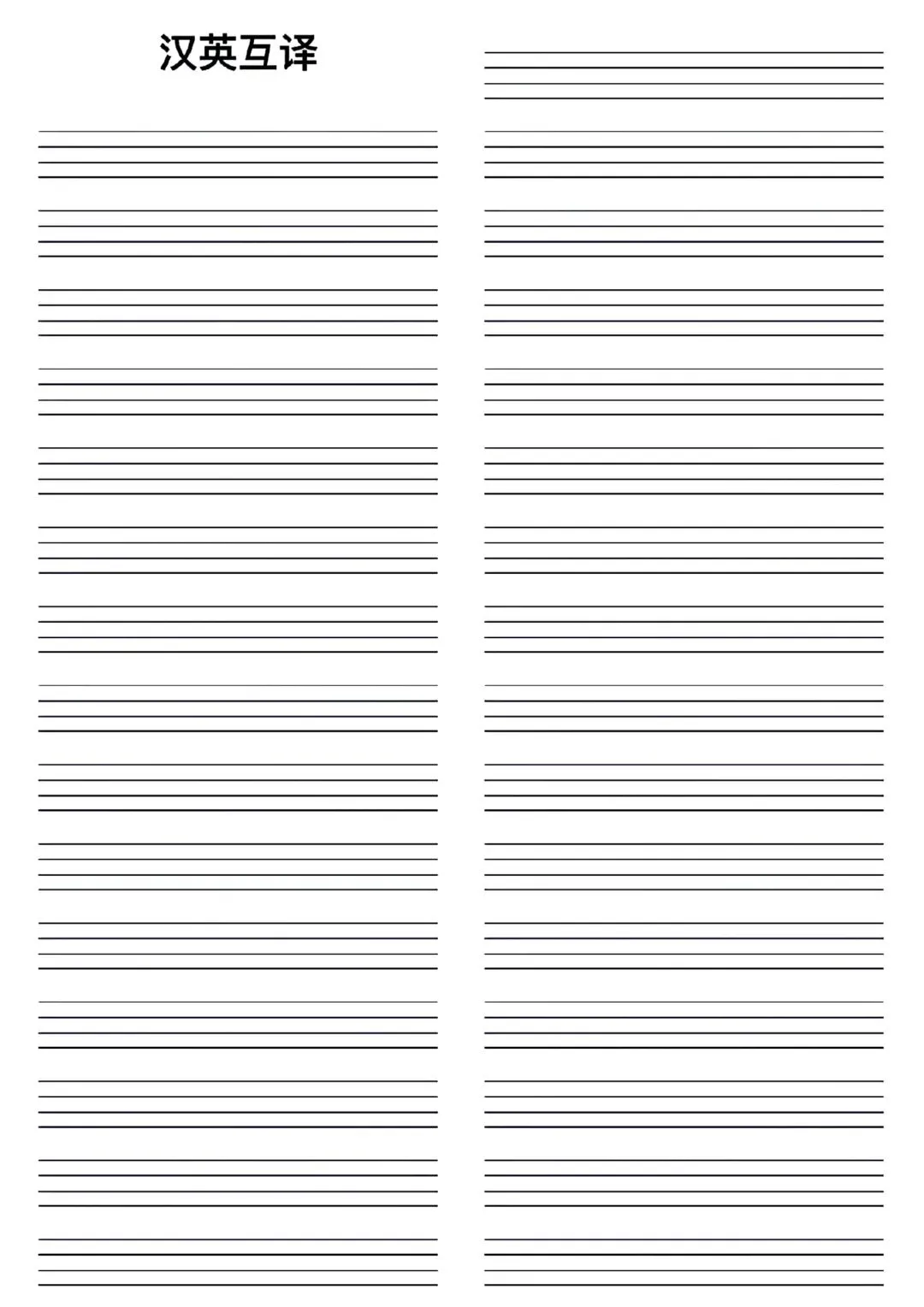 英语听写纸、单词表、汉英互译练习纸、作业纸等专用格子。