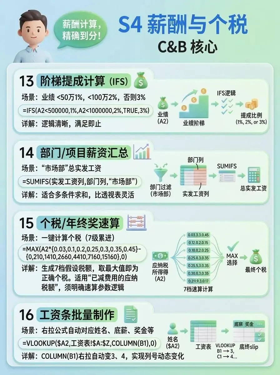 4.薪酬个税:阶梯提成IFS一个公式搞定,工资条批量制作,个税速算不求人。