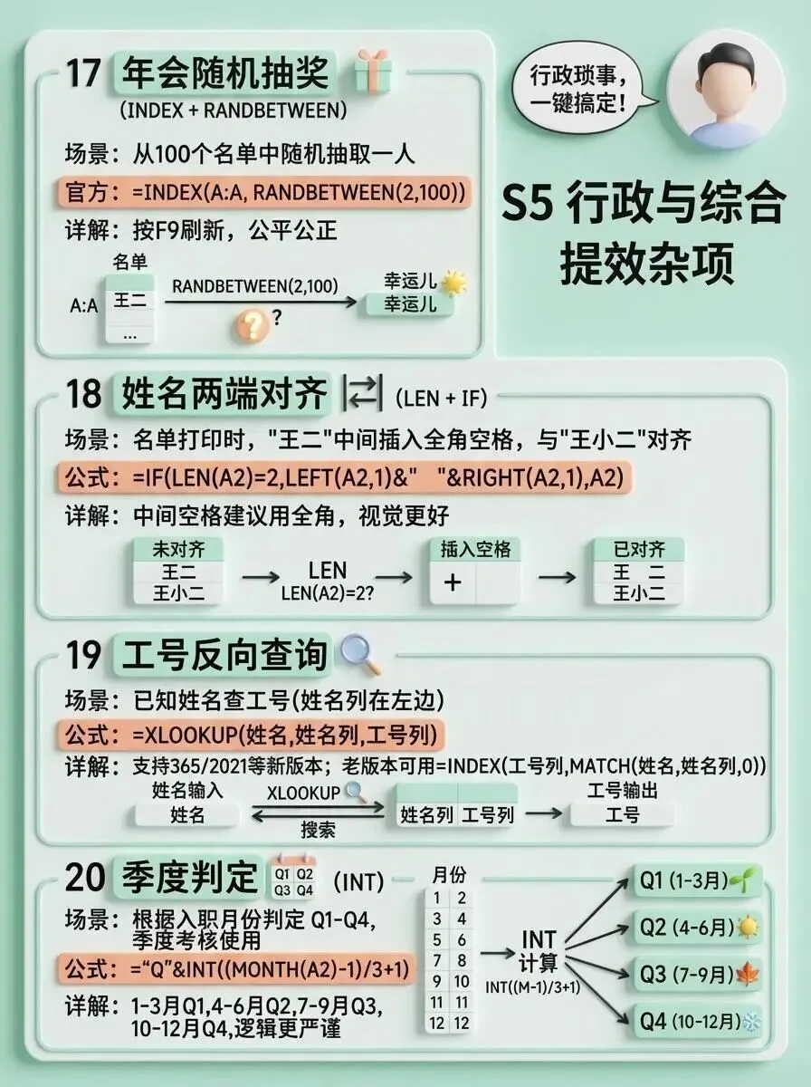 5.行政杂项:年会抽奖、工号反查、季度判定,XLOOKUP真的是yyds!