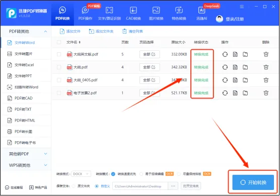 一款专业的PDF转换软件,支持PDF与Word、Excel、PPT、图片等文件相互转换,可以将PDF批量转换为可编辑的Word文档;