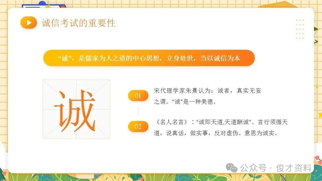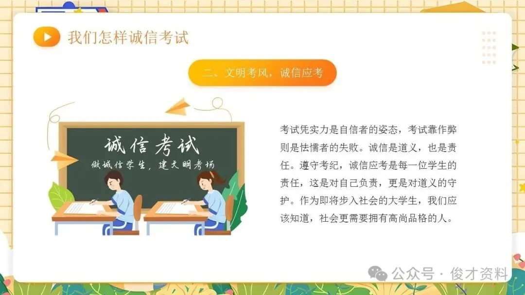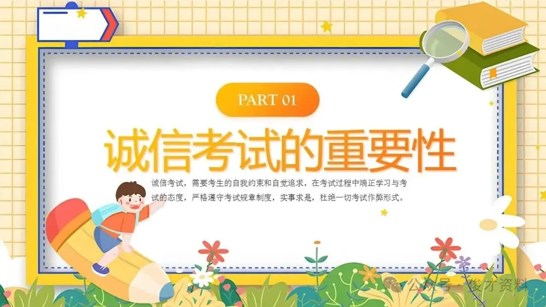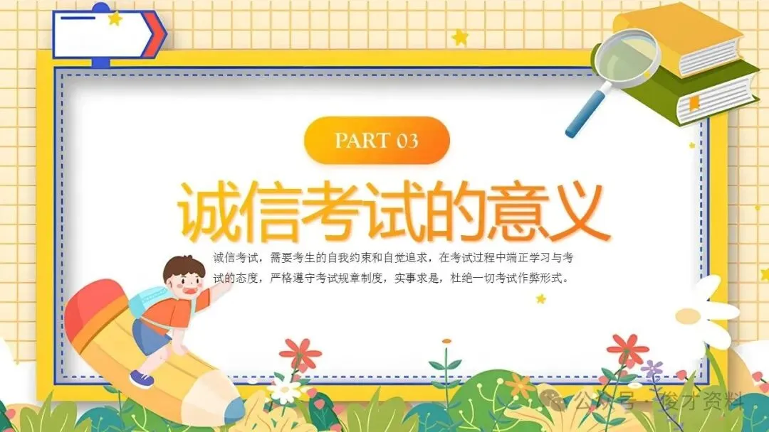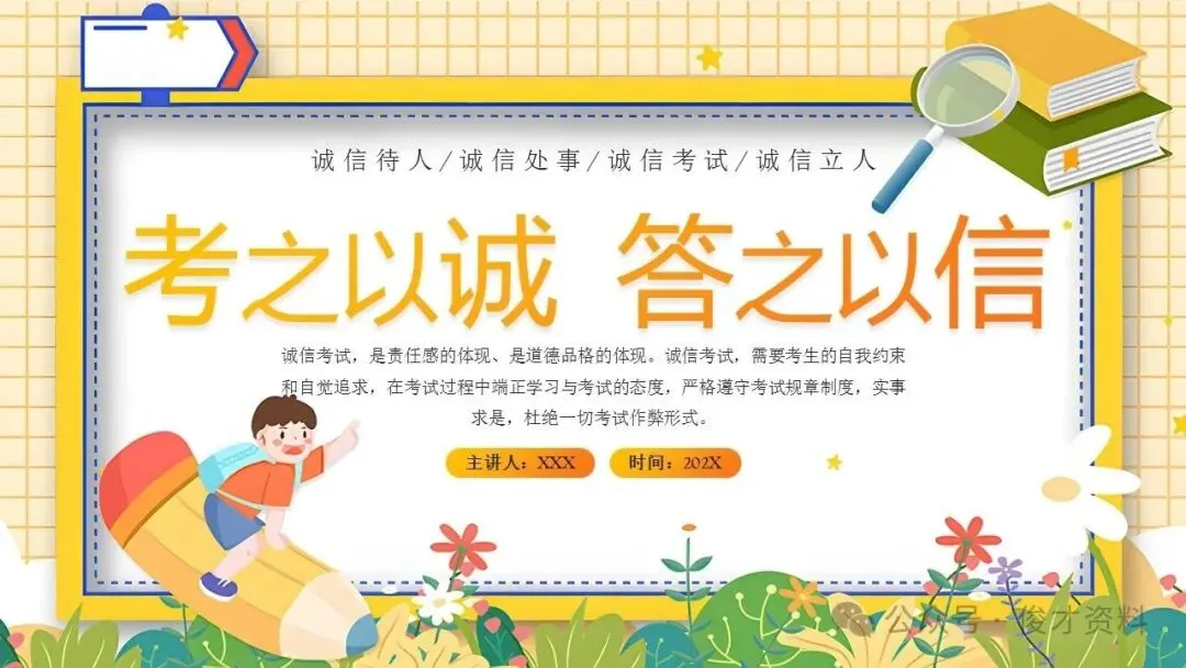 诚信考试主题班会ppt课件:考之以诚,答之以信。