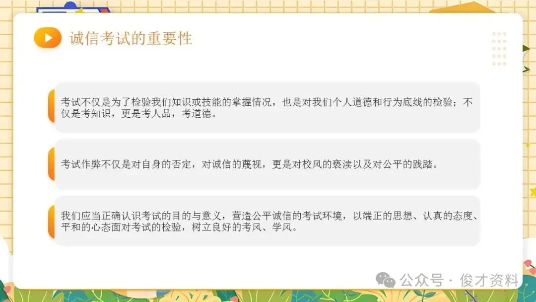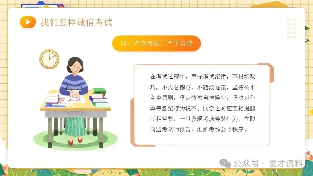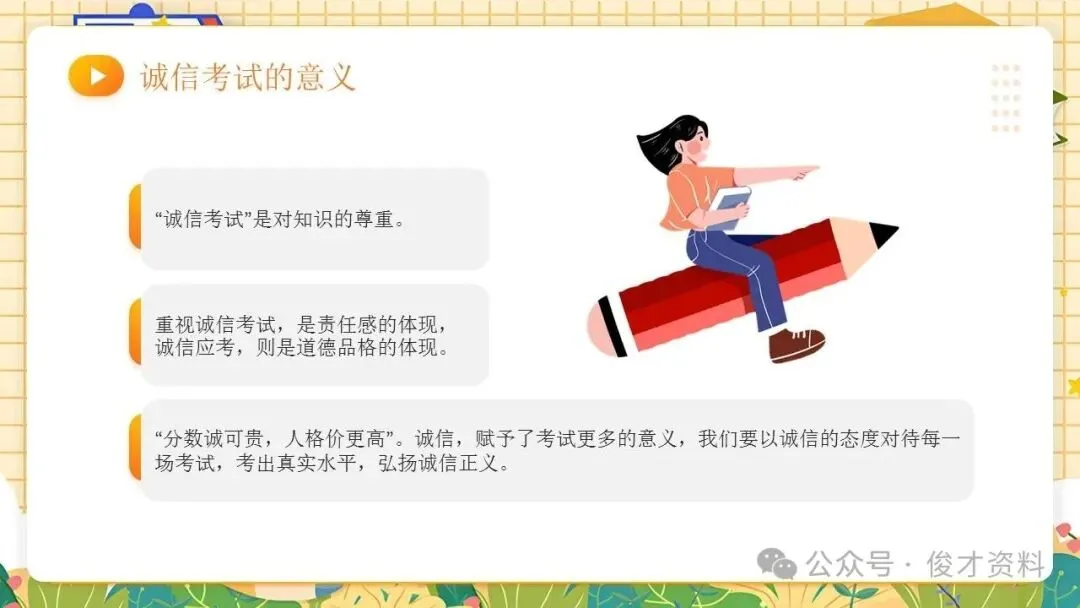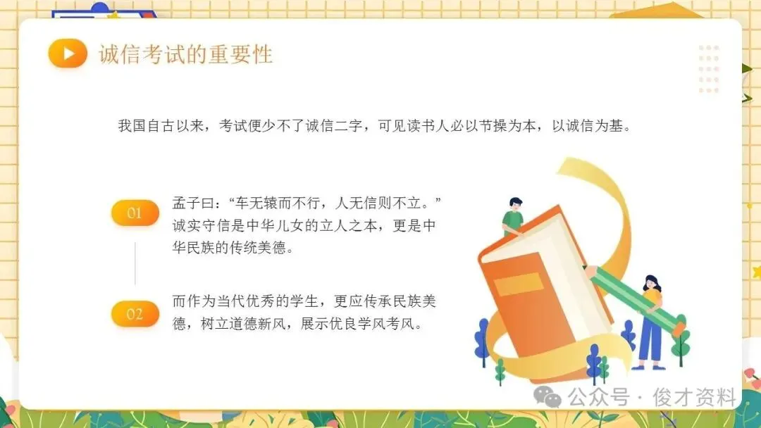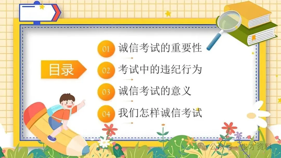 诚信考试主题班会ppt课件:考之以诚,答之以信。