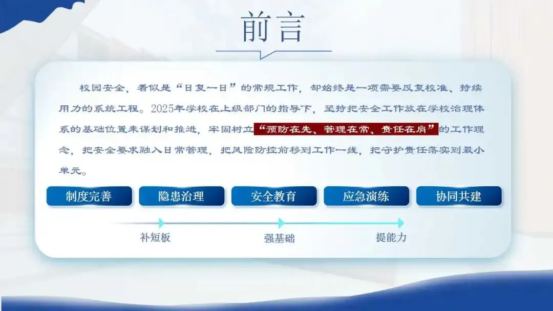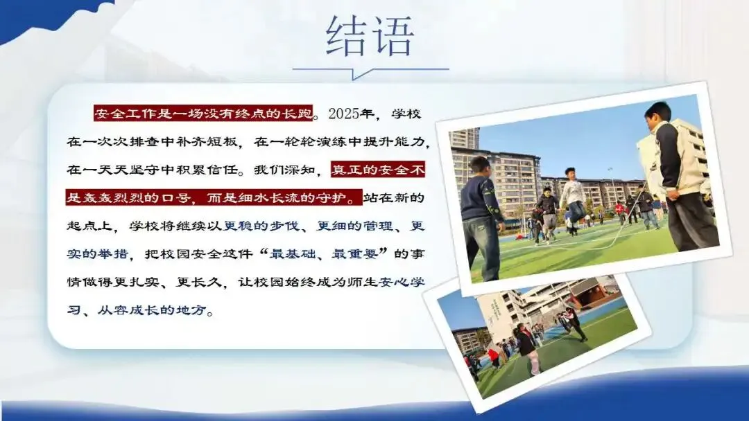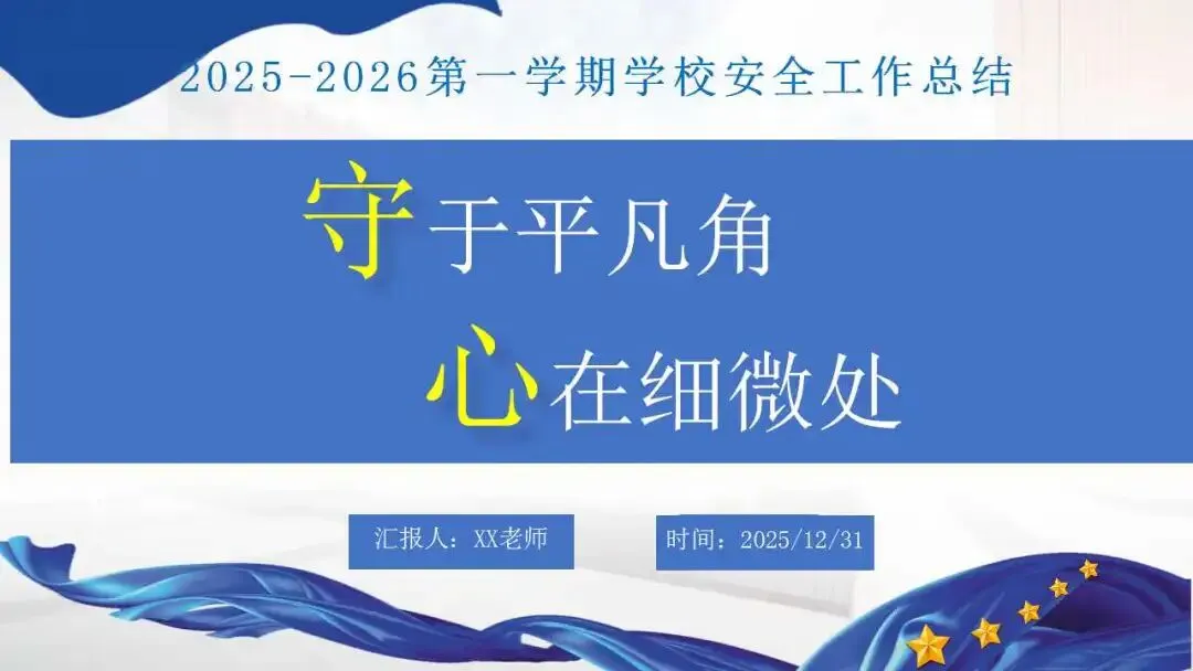 2025年秋季学期安全工作总结ppt:“守”于平凡角,“心”在细微处。