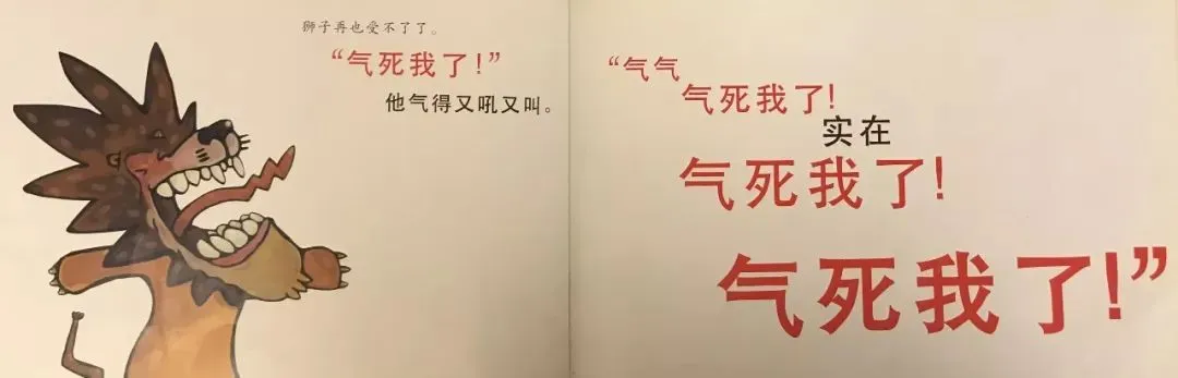 狮子再也受不了了。“气死我了!”他气得又吼又叫。“气气气死我了!实在气死我了!气死我了!”