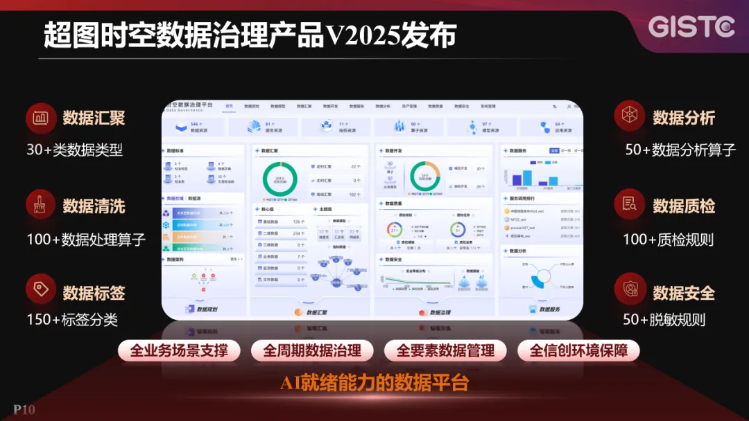 今年,对数据治理产品进行全新升级,发布超图时空数据数据治理产品V2025,具备数据汇聚、数据清洗、数据标签、数据分析、数据质检、数据安全等方面能力,满足全业务场景支撑、全周期数据治理、全要素数据管理、全信创环境保障的业务需求,同时也被打造为具备AI就绪能力的数据平台。