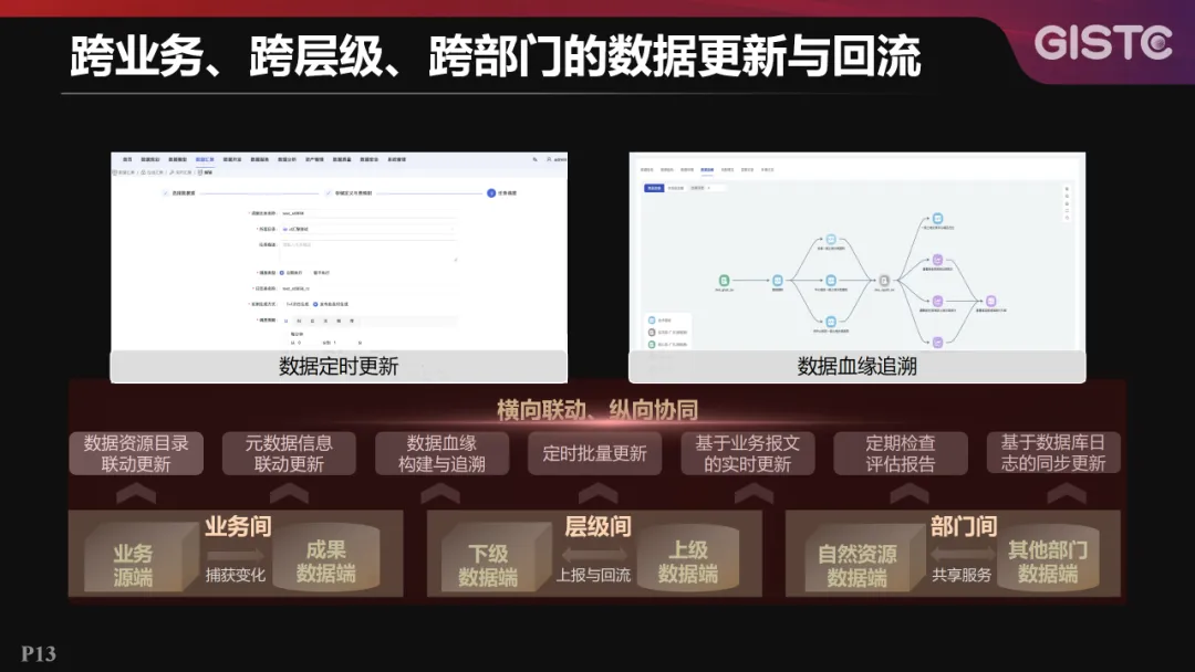 特性三:跨业务、跨层级、跨部门的数据更新与回流。产品提供数据资源目录联动更新、元数据信息联动更新、数据血缘构建与追踪等功能,从而实现数据的横向联动和纵向协同。