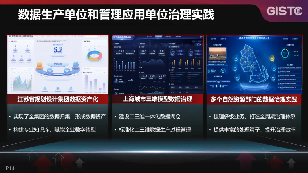 超图在多家数据生产单位和管理应用单位开展了治理实践。例如,在江苏省规划设计集团数据资产化项目中,实现了全集团数据归集,形成数据资产,并通过构建专业的知识库,赋能企业的数字转型;协助上海开展三维模型数据治理项目,建设二三维一体化的数据湖仓,支持标准化的二三维数据生产过程的管理;还支撑了多个自然资源部门的数据治理实践,通过梳理多级业务,打造全周期治理体系。