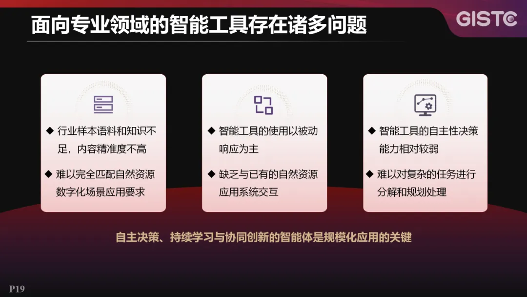 但在应用探索中,面向专业领域的智能工具存在诸多问题:行业样本语料库不足且内容精准度不高,难以完全匹配数字化场景应用需求;智能工具以被动响应为主,和现有的系统难以交互;智能工具自主性决策能力相对较弱,难以对复杂的任务进行分解和规划。为解决这些问题,今年,超图引入了具备自主决策、持续学习和协同创新的智能体。