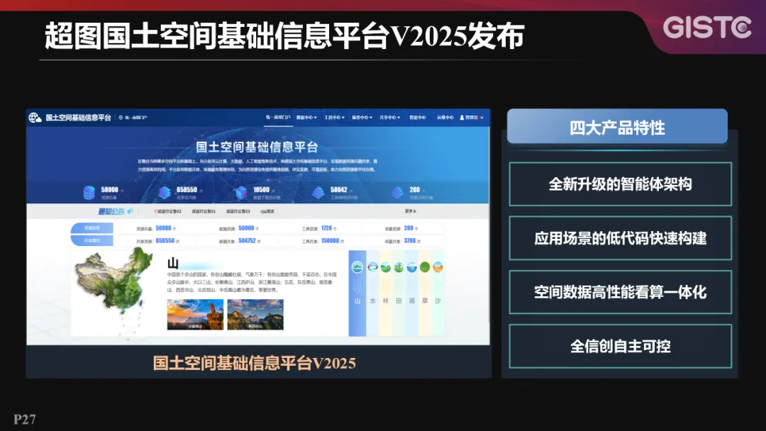 超图国土空间基础信息平台V2025,除了上述全新升级的智能体架构外,还具有应用场景的低代码快速构建、空间数据高性能看算一体化、全信创自主可控等产品特性。