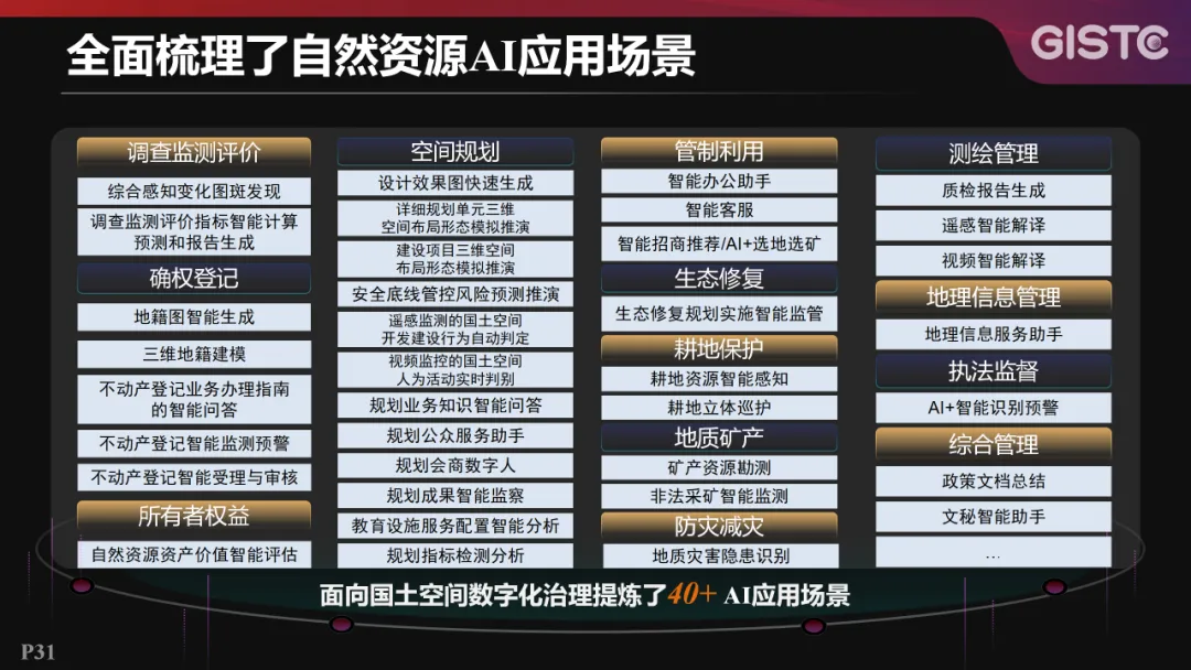 在全面梳理自然资源业务的基础上,超图面向国土空间数字化治理提炼了40多个AI应用场景。