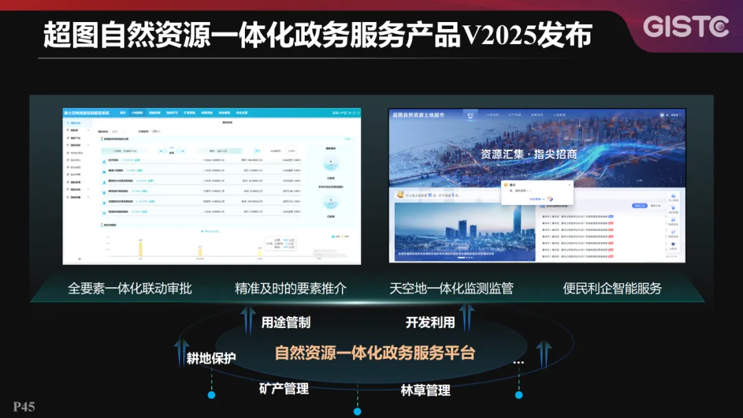 超图自然资源一体化政务服务产品V2025,面向用途管制、开发利用、耕地保护、矿产管理、林草管理等多种业务,提供了全要素一体化联动审批、精准及时的要素推介、天空地一体化监测监管和便民利企智能服务。
